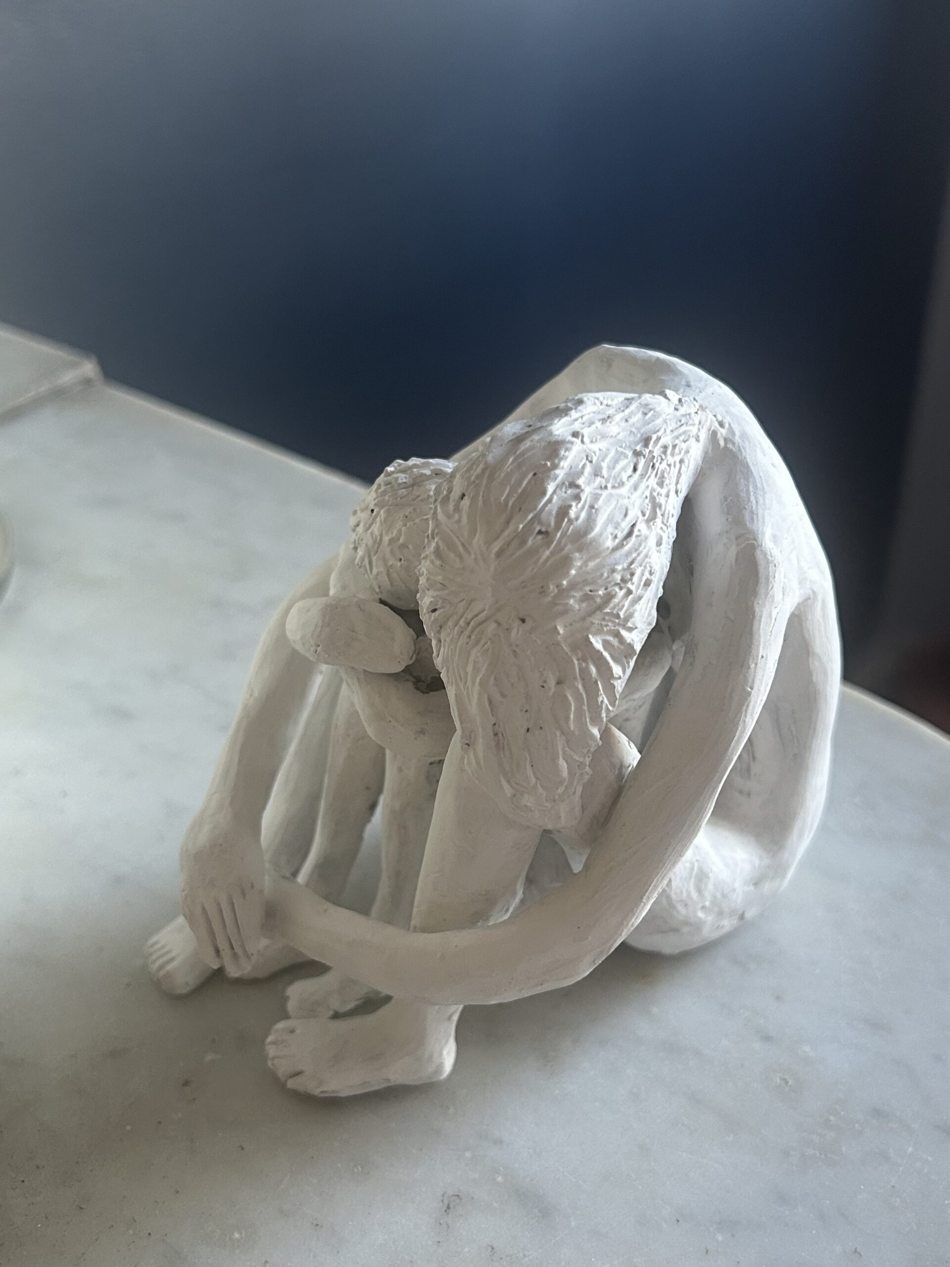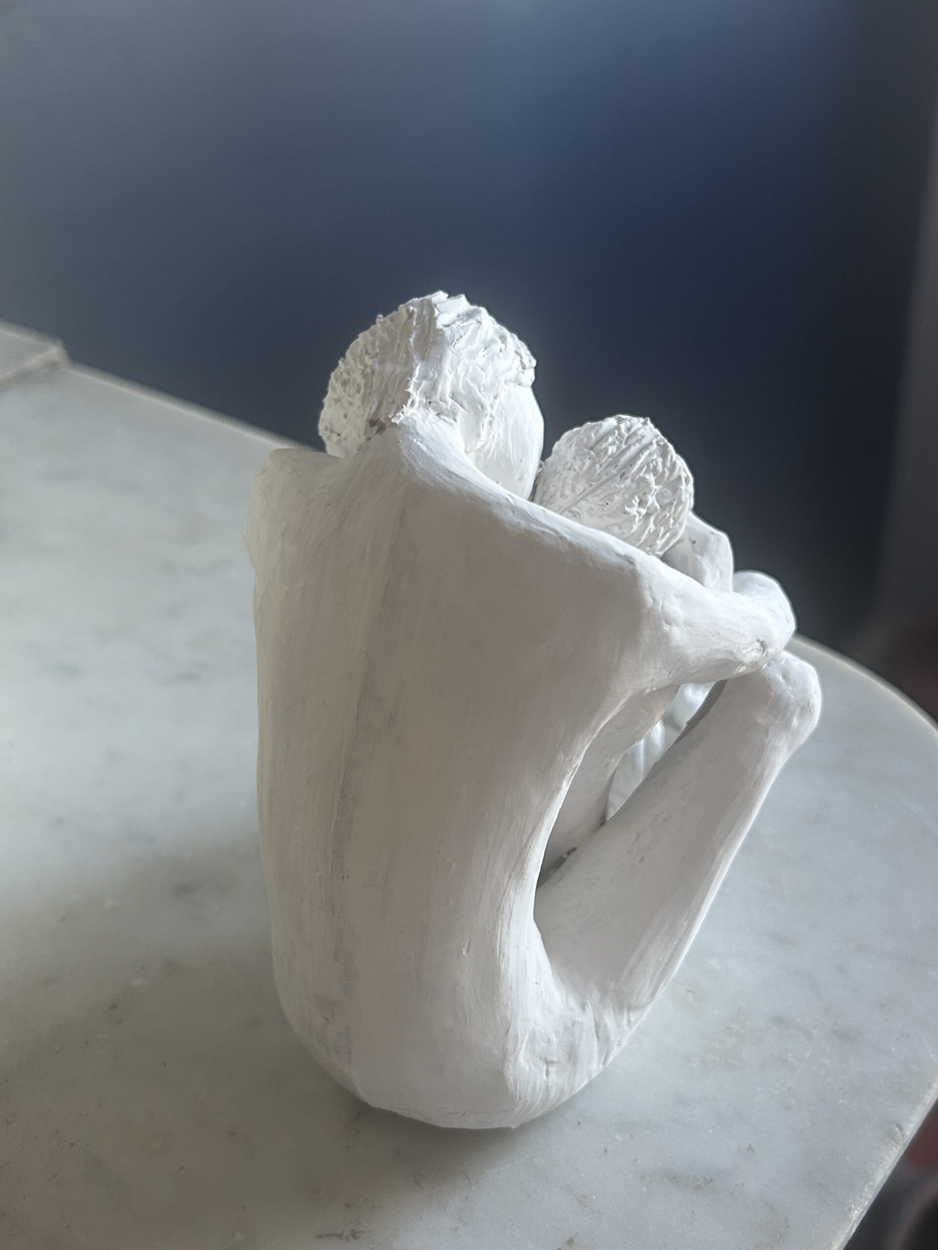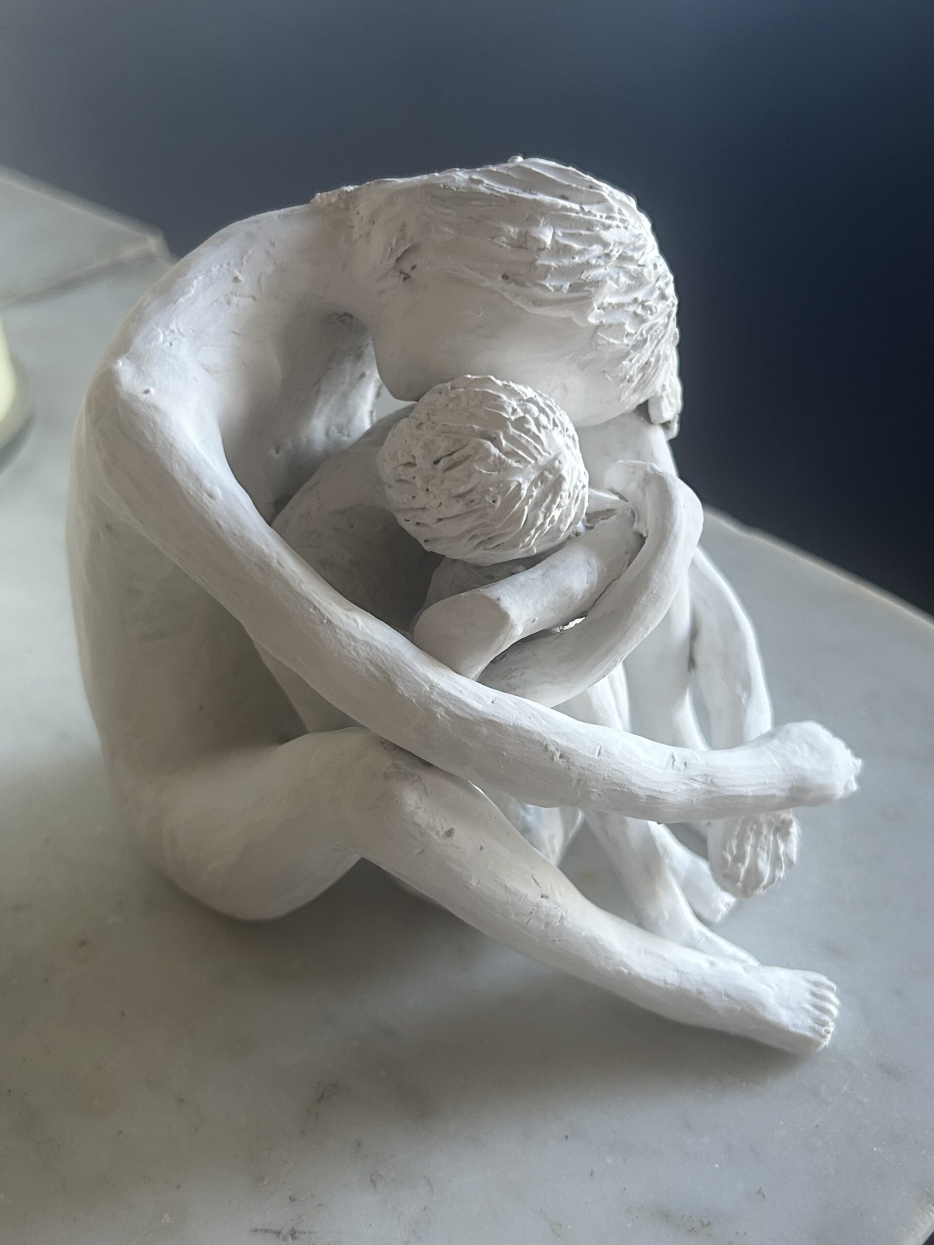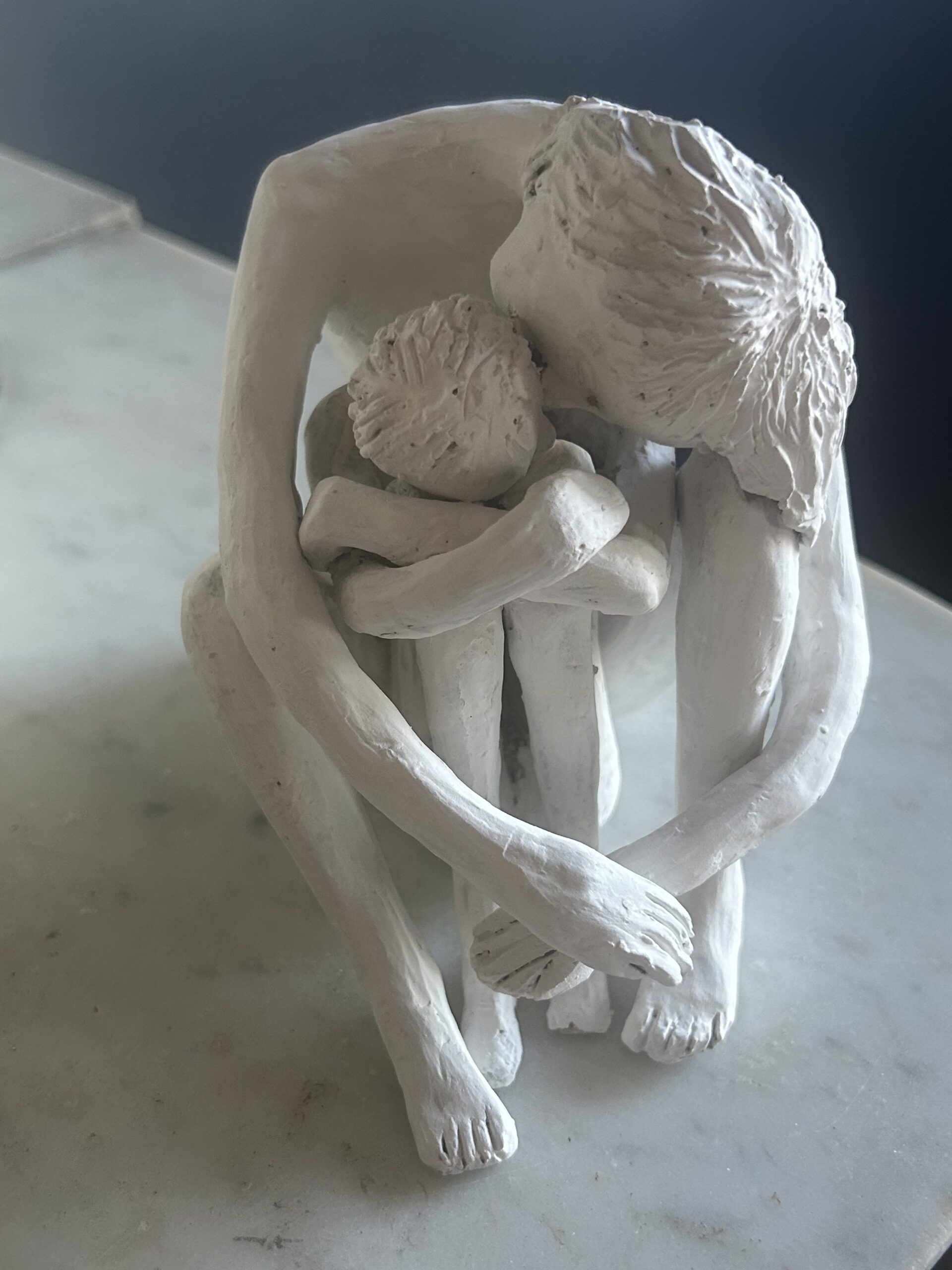 Abbraccio – Sculpture artisanale en argile blanche faite à la main, étreinte sculptée